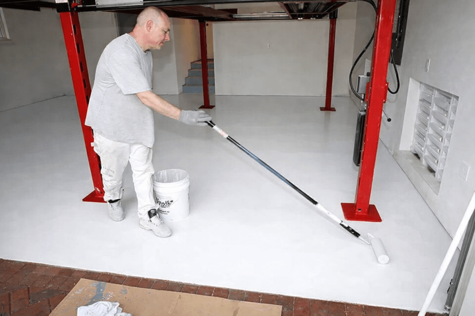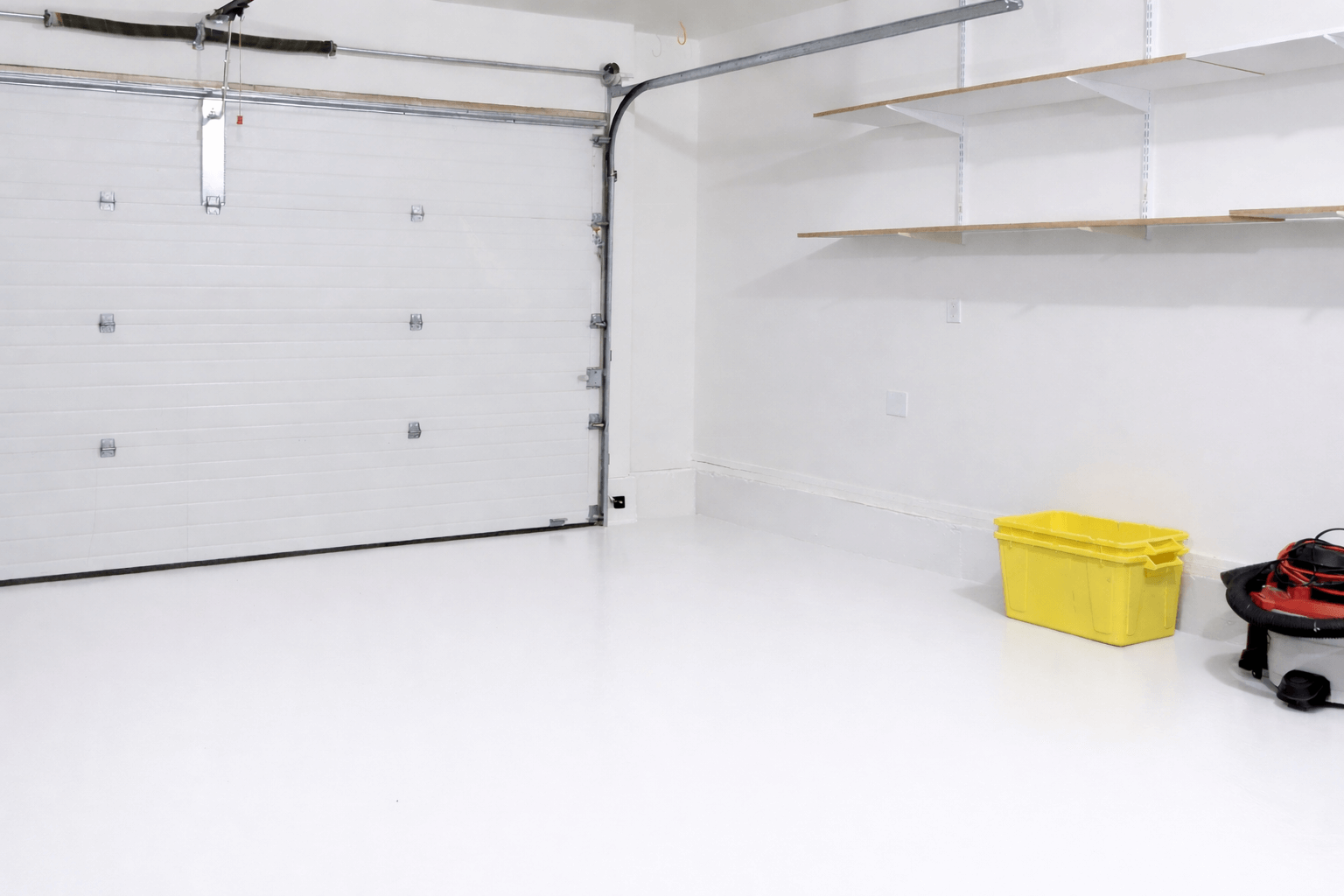 Vopseaua a transformat complet aspectul betonului din garaj. Albul este intens și uniform, iar finisajul arată premium.