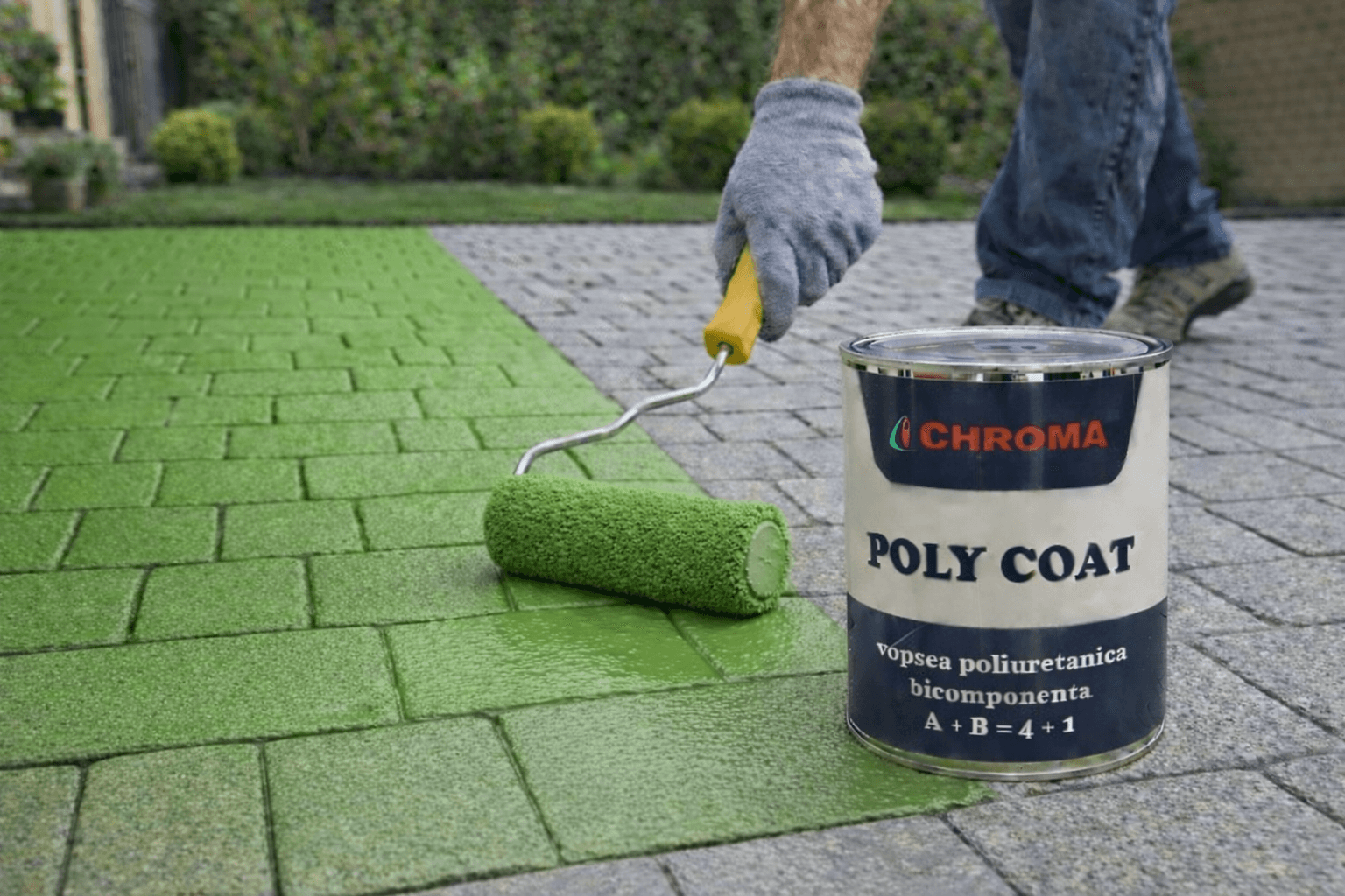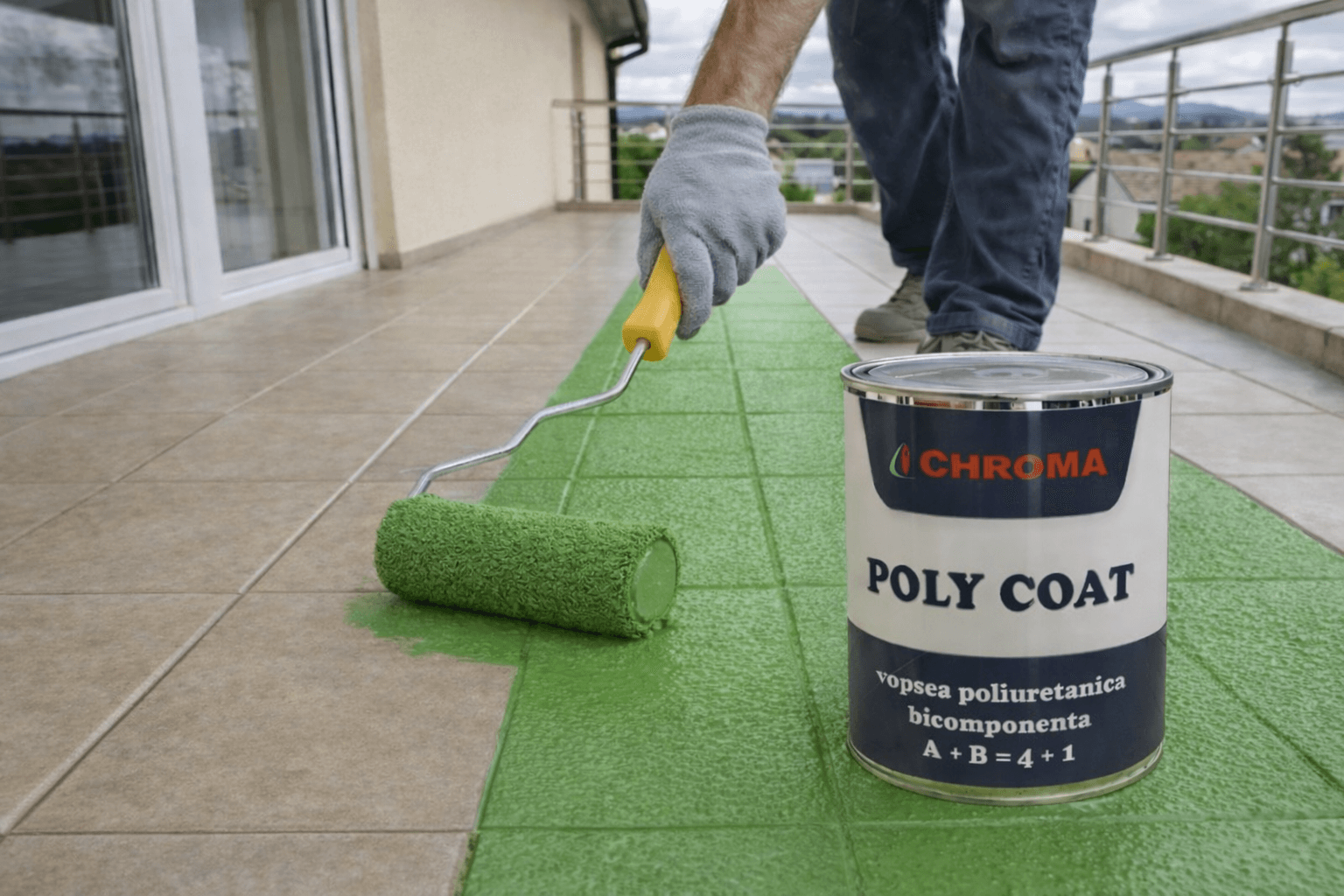 INSTRUCŢIUNI DE APLICARE: Suprafetele care se vor vopsi trebuie sa fie curate, uscate, fara praf, grasimi sau impuritati. Se amesteca foarte bine (de preferat cu un mixer de amestecare) partea A – 4 kg cu partea B – 1 kg aproximativ 2 min la viteza redusa pentru evitarea incalzirii amestecului.