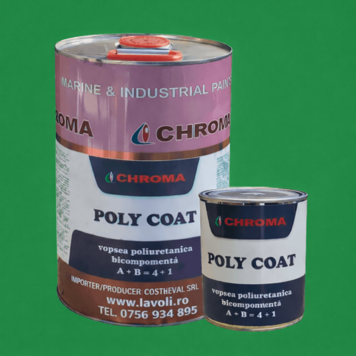 POLY COAT se recomanda a se folosi ca strat final pentru vopsirea pardoselilor de beton exterioare, terase exterioare, spalatorii, frizerii, exteriorul rezervoarelor, structurilor metalice, ambarcatiuni (exceptand opera vie), pe suprafete din fibra de sticla.